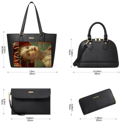 Női válltáska szett fekete, tágas bevásárlótáska, kiváló minőségű, divatos