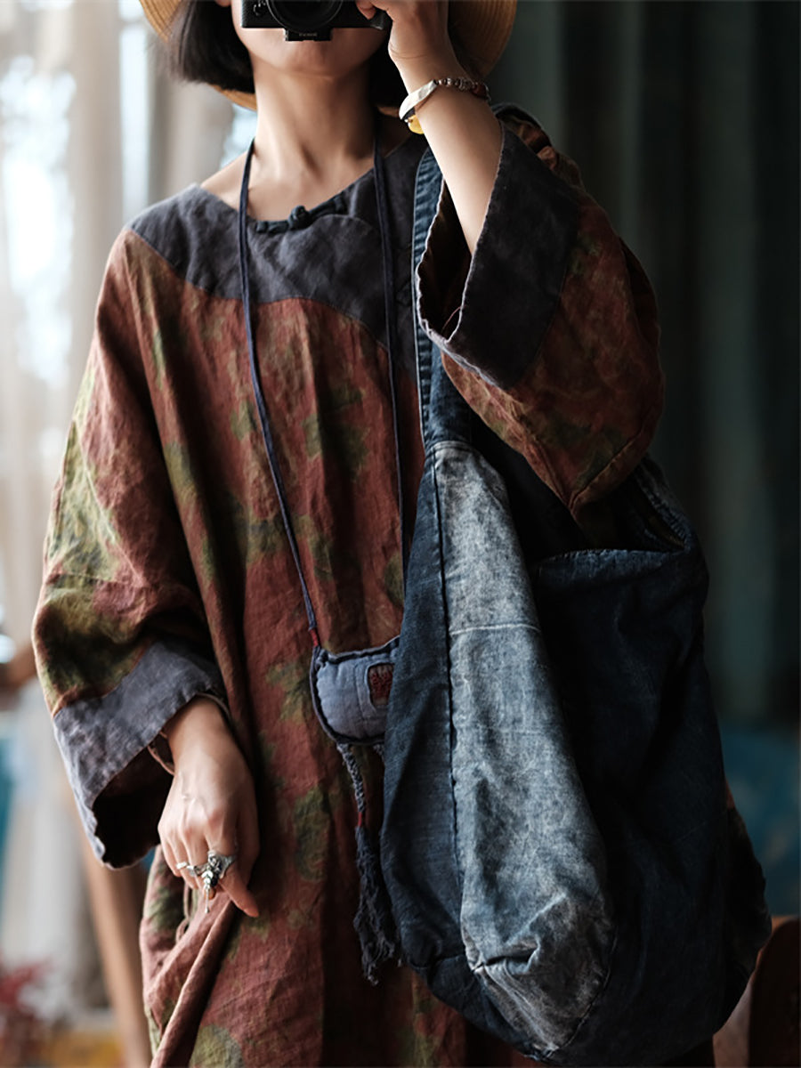 Vintage Denim Spliced Women Shoulder Bag
